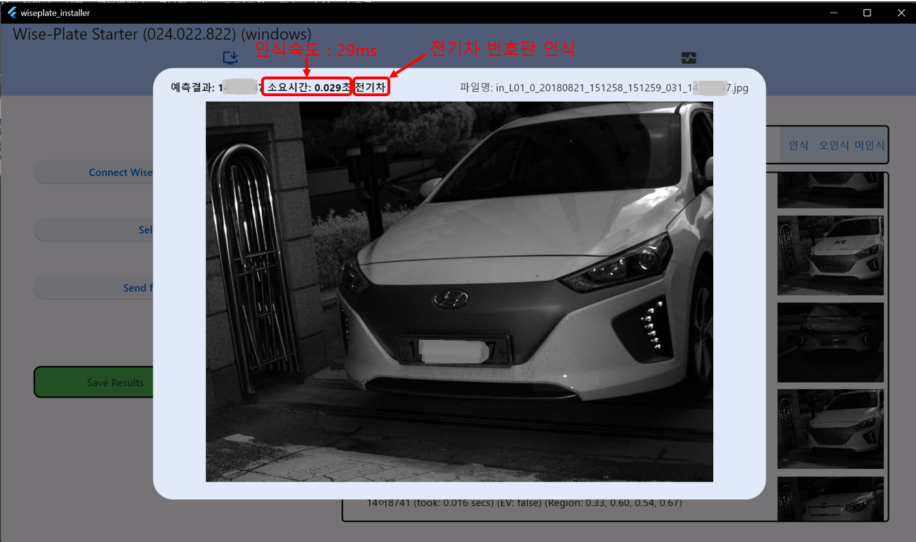 (ROI(Region Of Interest) 설정이 되지 않은 상태에서의 차량번호판 인식이 일부 느려질 경우도 있으나 정상